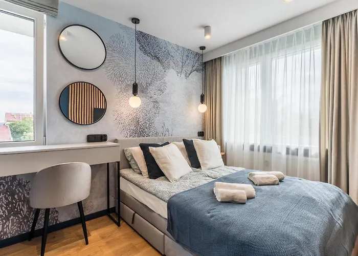Das 50 m² große Apartment Golden Seaside Beach By Aparo - Plaza 200M, 2 Lazienki, 2 Sypialnie Oraz Salon, 3 Tv, Balkon, Lozeczko Danzig befindet sich im Bezirk Brzezno, 2 km vom PGE Arena Gdańsk entfernt, das für einen Familienbesuch sehr zu empfehlen ist. Aktive Gäste dieser 2-Zimmer-Apartments können eine Sporthalle genießen.